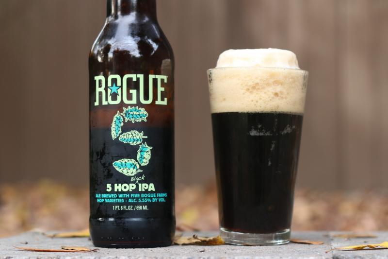 5 Hop pours blacker than a stout with a gigantic tan head that takes a while to calm down. The aroma is pretty robustly hoppy, predominantly a piney bitter smell. The first couple sips are mouth punches, with strong citrus and pine hoppiness that seem to compete with each other. The bitterness is almost chewable and the finish is rounded out by a burned malt characteristic that lingers. It's medium bodied and is smooth like a stout, and a unique brew for all the hop heads looking for something a little different. It's impressive and clever they managed to get the ABV in right at 5.55%.