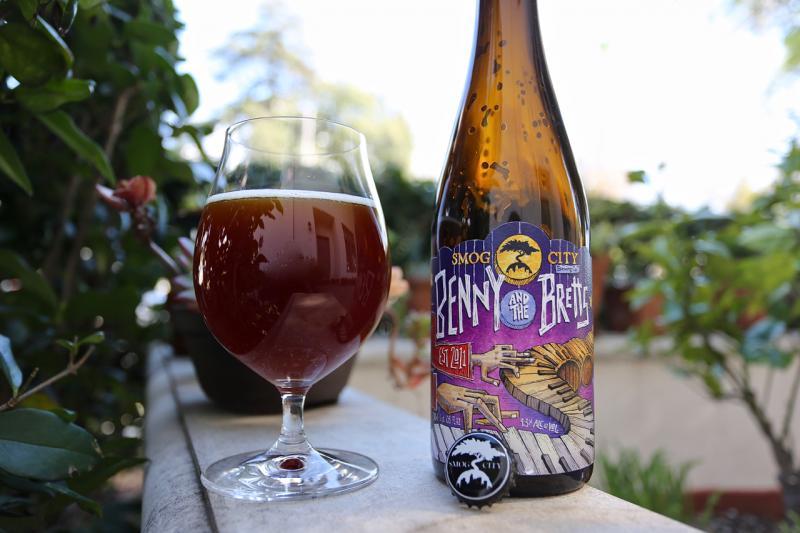 Pours a non-transparent, reddish amber color. Fizzy, light tan colored head that thins to a film, leaving some lacing on the glass. Aroma is Brett-forward with a lot of fruit. Taste follows suit, with a lip-puckering tartness up front, followed by dark fruit flavors like cherry, cranberry, and pomegranate. Clear signs of the barrel as big oak flavors balance things out. But the sour doesn't fade out, even after several sips. Mouthfeel is crisp with a medium body. This is a fantastic sour red ale and we can't wait to try more beers like this from Smog City Brewing Co.