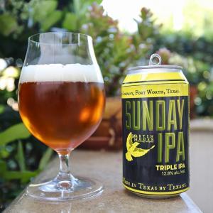 Color is between pale amber and medium amber; mostly clear with two fingers of white, fluffy head and ample lacing left on the glass. Strong, boozy aroma that is both hoppy and malty. Taste is big and bold. Surely there's a lot of malt to get the 11.99% ABV, but the flavor is dominated by hop flavors of apple, melon, and stone fruit. Medium to high bitterness. There's a booziness present that reminds us of apple brandy, but that might be what you want from a Triple IPA. The finish has some orange citrus and vanilla that throw a twist into the mix. Not one for a beginner, this TIPA packs a ton of flavor but kicks you in the face at the same time.