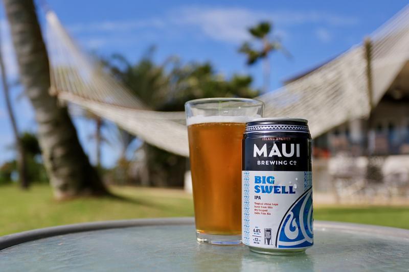 Big Swell pours a mostly transparent, light amber color with one finger of white, foamy head. Hoppy aroma of both citrus and tropical fruit. Taste follows suit, with citrus flavors like tangerine and lemon, plus tropical fruits like pineapple, guava, and papaya. There's a big malty backbone with caramel malt and a brown sugar or molasses-like sweetness. Medium bodied with a pleasant bitterness. Finish is smooth and bitter - nicely done West Coast style IPA.