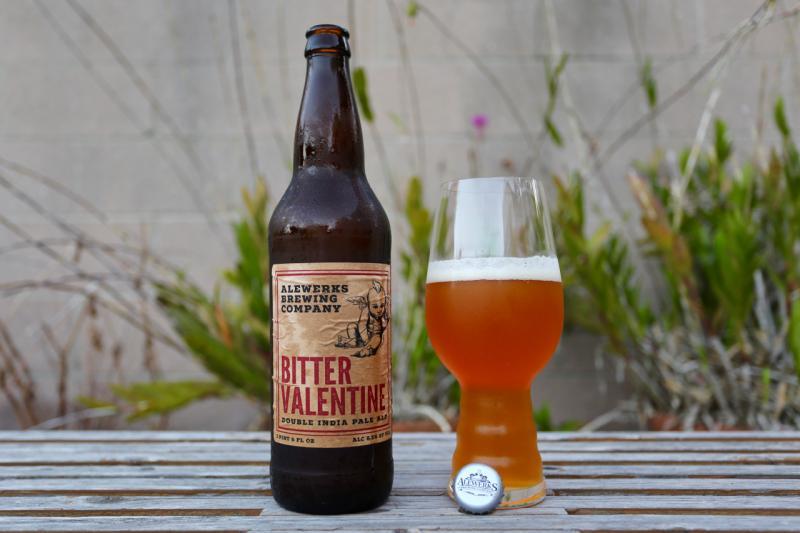 Bitter Valentine pours a deep gold or light amber color. It's fairly clear but not entirely transparent. Head is off-white, creamy and fluffy, with good retention and plenty of lacing. Aroma is hoppy and dank with citrus and pine. That carries over to the flavor, where the resinous pine and citrus take center stage. There's support from the bready malts that turn to a brown sugar and honey sweetness, which combined provide a nice balance to the hops. It's not all that bitter, despite the name, but the bitterness does seem to accumulate in the finish. Mouthfeel is creamy with a medium body. Finishes smooth with a nice mix between the citrus bitterness and malt sweetness. We're not bitter-Happy Valentine's Day from our crew to yours!