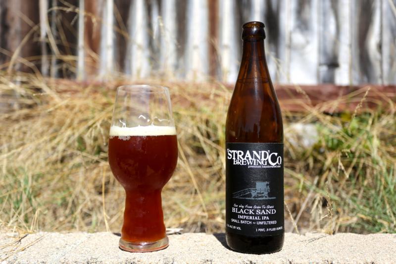 Black Sand is one of the "twin" Imperial IPAs from Strand Brewing Co. It pours a dark copper color with a lacy head. Much like the White Sand, this is dominated by dark crystal malts and has a bit of a British feel to it. There are some hops, and they are a little fruity and tropical, maybe dragon fruit or lychee? In the middle you'll find a caramel sweetness, but also some burnt toffee notes, giving way to a pretty bitter finish. It's a nice, complex beer, but similar to the White Sand except for the darker color and a little more burnt toffee and caramel notes.