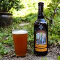 This Biere de Garde is a piece de resistance. First of all, the bottle itself is impressive: the black ceramic swing top bottle with the artwork on the front just looks old school cool. On the pour, the beer dribbles out of the narrow neck to glug its way into your glass. It's a light coppery color with medium carbonation and a significant cream colored, coarse bubbled head. The aroma is very sweet with a strong honey fragrance, and malt bringing up the rear. The flavor is super complex and pleasant, with honey and peach dancing on your tongue, fighting for top billing. It has a crisp finish as the honey/peach waltz abruptly ceases and bows out to leave a faint and satisfying bitter finish that flickers for half a second, then disappears. All in all, it's a delicious beer.
