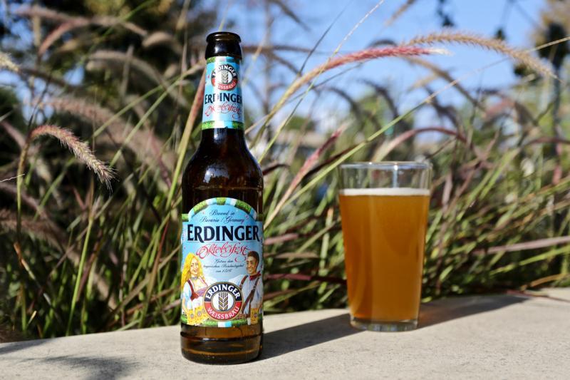 Erdinger Oktoberfest pours a somewhat hazy, golden color, with two fingers of white, foamy head. Aroma is big for the style, with malt, yeast, and fruit. The taste is super smooth, with a fantastic mouthfeel and nice carbonation. Pale or pilsner malt and wheat create a bready taste. Then there’s the banana, spices, and a touch of Noble hops. But everything is very balanced, with each of these having an equal weight. Kind of a Festbier and Hefeweizen marriage, which we really enjoy. Prost!