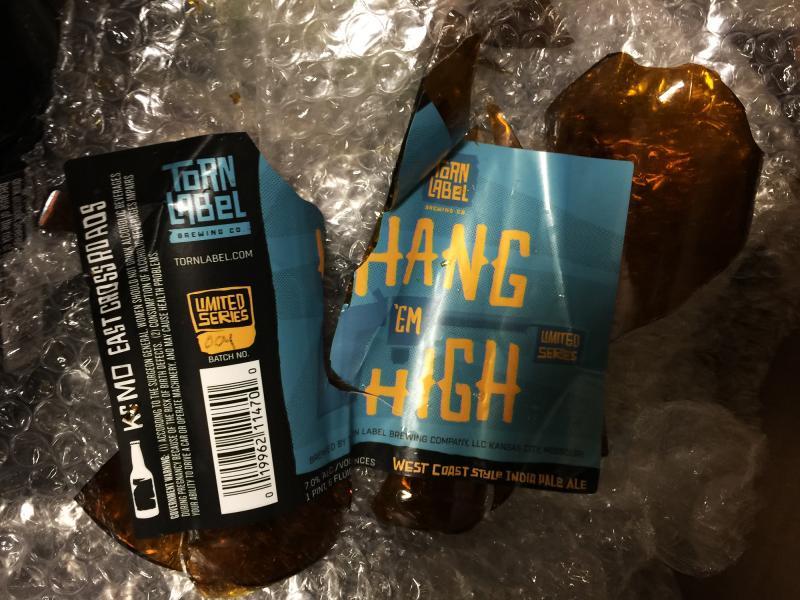 Hang 'em High IPA (Batch #4) is a West Coast Style IPA brewed by Torn Label in Kansas City. The color is a mostly clear, brownish copper, almost like rust. The head is not thick, but it does linger for quite some time. Aroma is fresh, hoppy, and piney. Carbonation is medium to above average with a powdery mouthfeel. Hops are citrusy, like orange and lime, but also some pine resin and peach. Overall this is fresh and hoppy, but still has some smooth malt characteristics. The finish is a little bitter but also maintains a lingering peach flavored sweetness.