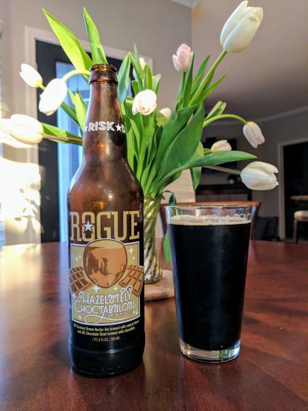 Hazelutely Choctabulous pours nearly black, with a thick tan head that doesn't lace much. The aroma is straightforward of toasted hazelnuts and milk chocolate. The flavors meld well to make it taste like a bittersweet dark chocolate cookie with toasted hazelnuts as a garnish. There's a sweet, almost toffee like undertone that's cut short by a balancing baker's chocolate bitterness. The mouthfeel is medium and it has a lively carbonation that delivers some earthiness towards the latter half of your sip. It ends with a slight malty dryness.