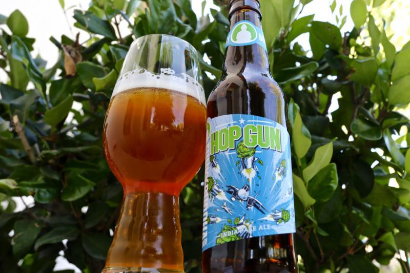 Hop Gun pours a fairly clear, golden amber color. The head is solid, long lasting with plenty of lacing. The aroma is a mix between dank, resinous hops and some noticeable malt. Medium body, semi-sweet caramel notes with a strong malt backbone as you might expect from a Florida IPA. However, there's plenty of pine, tropical fruit, and citrus hop flavors with nothing too dominant. Nice overall balance that leads into a slightly bitter but pleasant finish.