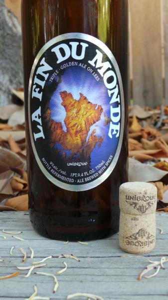 La Fin du Monde pours a non-transparent, golden orange color with a long lasting, creamy white head. Tons of lacing is left on the glass. Aroma of Belgian yeast, fruit, and spices. Taste matches the nose, with big fruit flavors, including banana and pear, as well as spices like coriander and clove. Floral hops and a significant wheaty malt presence complement the fruit and the yeast. Mouthfeel is crisp and dry with lots of mouthcoating. Full bodied, long and smooth in the finish. Brewed in Canada, this Belgian-style Tripel does a real nice job of representing this style.