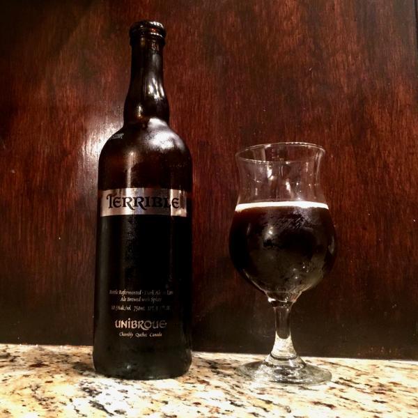 La Terrible is a dark brown and cloudy beer that lets no light through. It has a thin light brown head and the aroma of prunes and buttered bread. Dark fruits dominate the flavor of this beer with strong notes of fig, prune, raisins and Belgian yeast. There is a sweet bread characterisic as well that mixes with the burnt malts to give it an overall malt backbone. The mouthfeel is medium bodied and the aftertaste leaves you with a touch of sweetness. This may not be the most well balanced Belgian ale in the world (that'd be hard to do), but it's not Terrible.