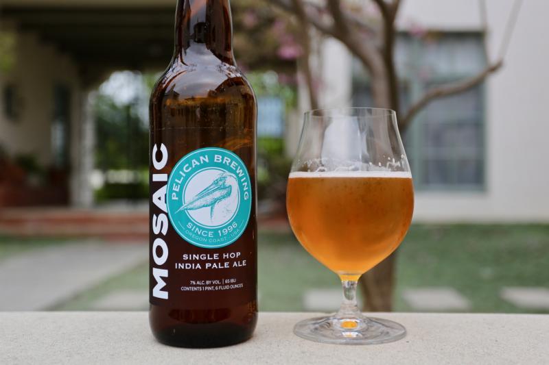 This single hop IPA from Pelican Brewing Company pours a mostly clear, golden color with a thick foamy off-white head. Intense, dank aroma from the Mosaic hops that create melon, tropical fruit, and guava notes. Taste is fruity, with a bit of citrus and pine but mostly tropical fruits. Guava, mango, orange and lime. Then resinous pine and bit of onion. Malt bill provides support but really lets the Mosaic shine. Light body with a smooth mouthfeel. Finish is clean and refreshing with just a touch of bitterness. Simple yet delicious.