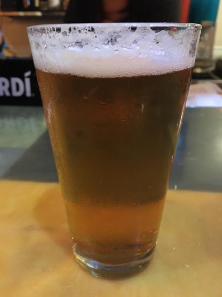 Light head, very little carbonation, golden brown, hints of citrus (orange peel), light & refreshing