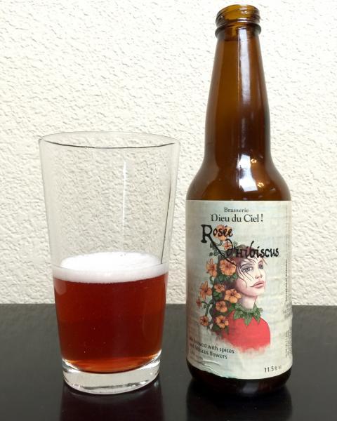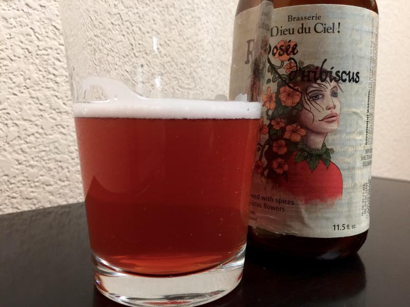 Rosee D'hibiscus pours a cross in color between red grapefruit and a blood orange with slight cloudiness and sparkling wine-like bubbles. This has a flower bouquet smell. The taste is similar to that of rose wine with some sweet cherry flavor in the beginning that is mellowed out the more earthy characteristics of the hibiscus and a little spice in the aftertaste.