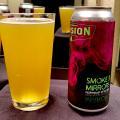 Smoke and Mirrors is a pale golden color, hazy but not opaque. It's medium head disappears after a minute. It has a citrus aroma with a noticeable mosaic floral hops. The flavors consist of crisp barley maltiness initially, with some lemon fruit and a tangy quality. This transitions into fresh pine hops and mild bitterness that that progressively lessens until you are left with a touch of sweetness on the aftertaste. This is very well balanced and enjoyable, another quality DIPA from Revision.