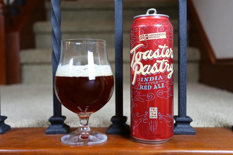Toaster Pastry, which is brewed in a building that used to produce the most famous toaster pastry, the Pop Tart, is a dark red-orange color with a light tan head that lasts a while. The aroma consists of a light bready malt smell with some hoppy grapefruit and pine. The taste has a fruity citrus hop flavor with a backbone of earthy malts that finishes with some citrus bitterness. There are hints of toaster pastry qualities, but luckily, not too much.